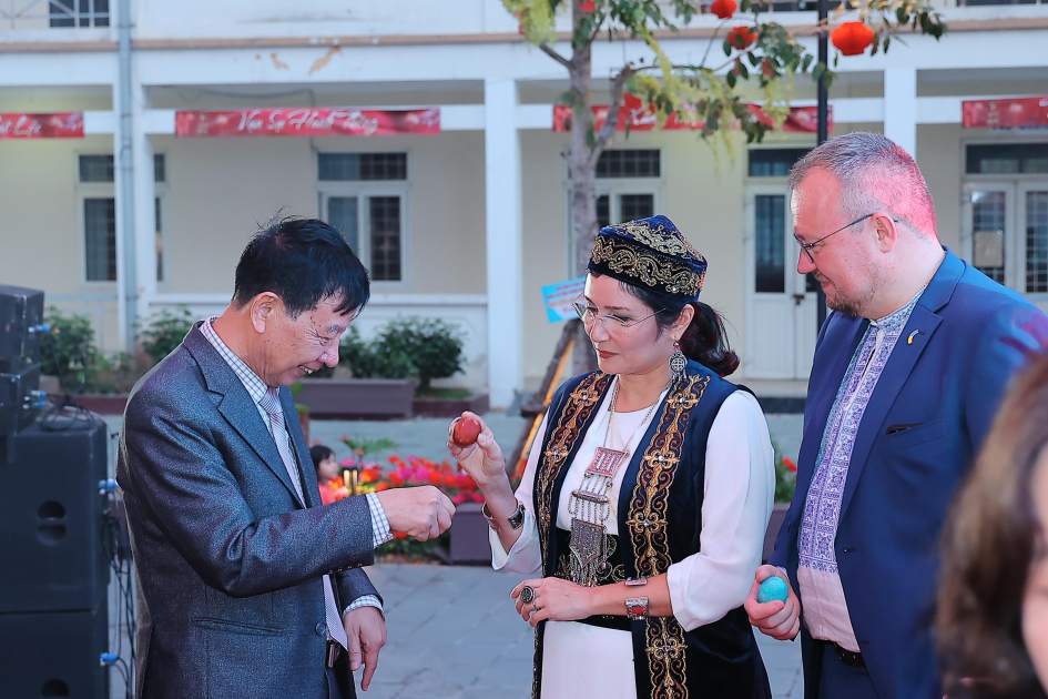 Qazaxıstanın Vyetnamdakı səfiri Kanat Tomyuş, Hanoy Ticarət və Turizm Kollecinin rektoru xanım Çin Ti Tu Ha öz növbələrində bayram təbriklərini çatdıraraq, bu tədbirin xalqlarımız arasındakı dostluq və əməkdaşlıq münasibətlərinin inkişafında xüsusi rol oynadığını vurğulayıblar.